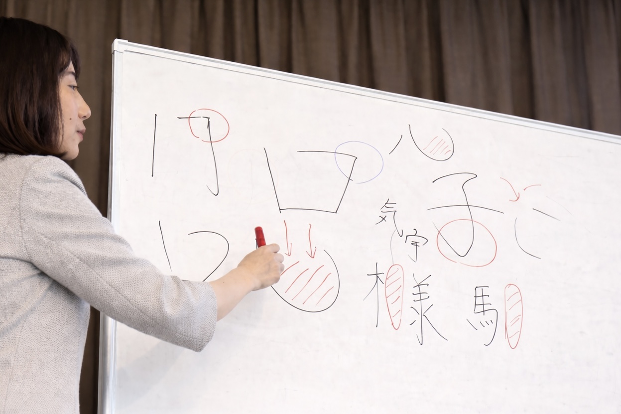 筆跡から書き手の性質をどう鑑定するのか? まず、用紙に決まった文章を書きます。それをもとに、長い歴史に基づいて確立された、なんと、72もある筆跡の型から5〜6型選び出し、「現在の」その人の性質を炙り出します。そして、「いつまでに、どんな自分になりたいのか」に合わせて筆跡を変える指導を受けます。例えば、文字の隙間を開けるのか、詰めるのか。払いの長さを長くしたり、短くしたり。書き初めに必ずひねりをつけたり。「半年後に事業で結果を出したい」という仕事面はもちろん、健康や金運などなど、なりたい自分に合わせた筆跡を伝授してもらいます。ちなみに、72型の中には「良くない運気に傾く筆跡」も5〜6型あるらしく、もし、それに当てはまる筆跡の場合は即、修正指導が入るそうですよ。